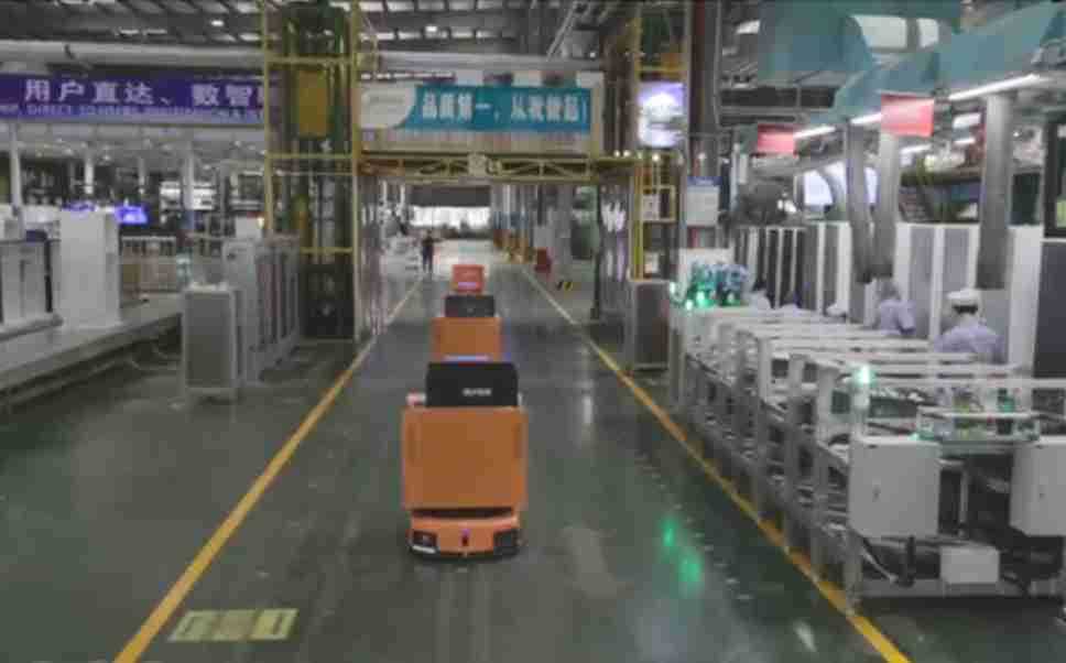 为车载冰箱物流配送打造的智能解决方案,,,包含产中物流通过潜伏举升AMR搬运至线边,,,产后成品物流智能仓储,,流程包含产中物流智能齐套入库,,,,线边安灯叫料AMR智能配送至线边,,,成品入库、、、出库,,,通过无人堆高车机器人,,,,智能仓储管理替代人工作业管理,,,实现更高存储、、、更高效率、、更具柔性化的解决方案。。